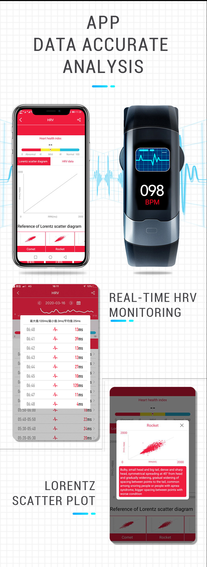 Functions: taking photos, counting steps, heart rate monitoring, blood pressure measurement, smart reminder, sleep monitoring, blood oxygen detection